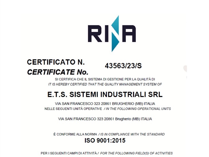 ETS Sistemi è operativa sin dal 1995 e da allora si occupa dello sviluppo di sistemi per l'ottimizzazione e la gestione degli impianti industriali, di cui cura l'aspetto progettuale, l'eventuale prototipazione, l'installazione e il collaudo in loco, la successiva manutenzione anche in ambienti classificati. La grande esperienza, maturata a contatto con importanti realtà produttive internazionali, e la costante evoluzione della ricerca, con l'ideazione di particolari speciali, consentono a ETS di offrire un servizio estremamente flessibile e ad alto standard qualitativo nei settori oil & gas, aerospaziale, nucleare e dei semiconduttori. Per un'industria avanzata ed efficiente.