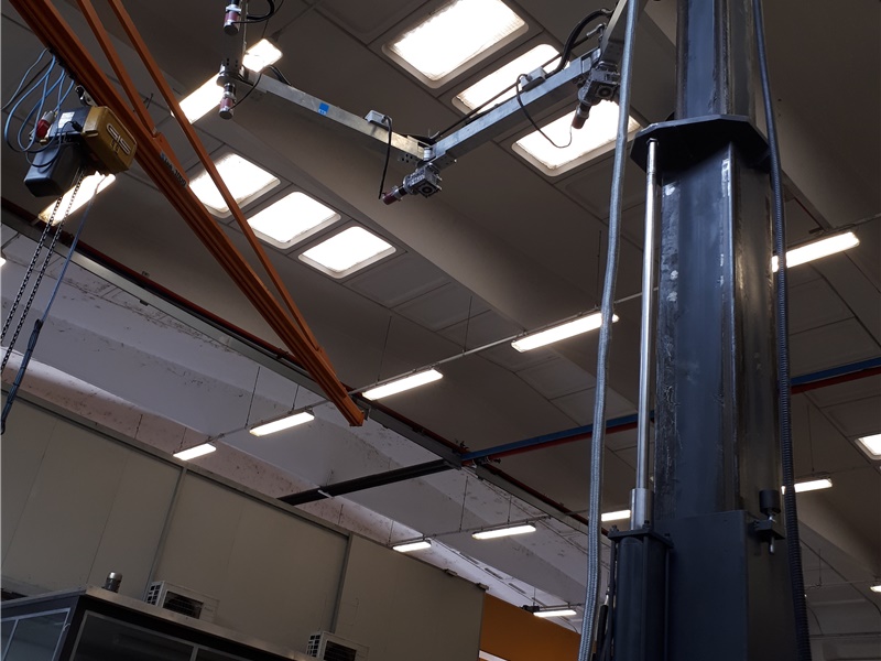 L'impiego dello sniffer per la verifica di perdite in sistemi sottoposti ad elevata pressione durante il collaudo, è di per sè pericoloso peer l'operatore poichè lo sottopone al rischio di esplosione del componente durante la prova. Il sistema realizzato è in grado di coprire un'area di raggio 4 metri con una altezza fino a 5 metri ed essere pilotato in remoto con 7 motori passo-passo in grado di gestiore il posizionamento dello sniffer. Telecamere opportunamete posizionate rendono il collaudo con operatore posizionato in area sicura anche oltre le delimitazioni di sicurezza
